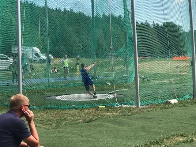 David Sahi (P19) har varit i Eskilstuna och tävlat i Mälarspelen idag, det var oerhört varmt och svårt att hitta skugga under tävlingen men han lyckades kasta släggan 49,25m vilket räckte till en silvermedalj.