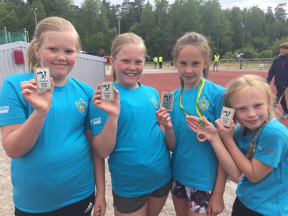 Fyra av våra flickor födda -08 tävlade i Alunda idag, med följande resultat: Elsa Ekehult Höjd 90 cm Längd 2,36 Elsa Ljung Höjd 1,05 60m 8,8 (försök) och 9,1 (final) Längd 3,78 Tova Melander Höjd 1,00 60m 10,8 Längd 2,96 Vera Ekehult Höjd 90 cm Längd 2,43